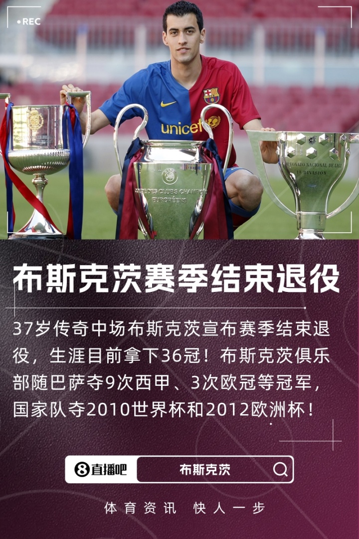 - 巴萨晒集锦致敬自宣本赛季结束后退役的布斯克茨:永远的红蓝魂!