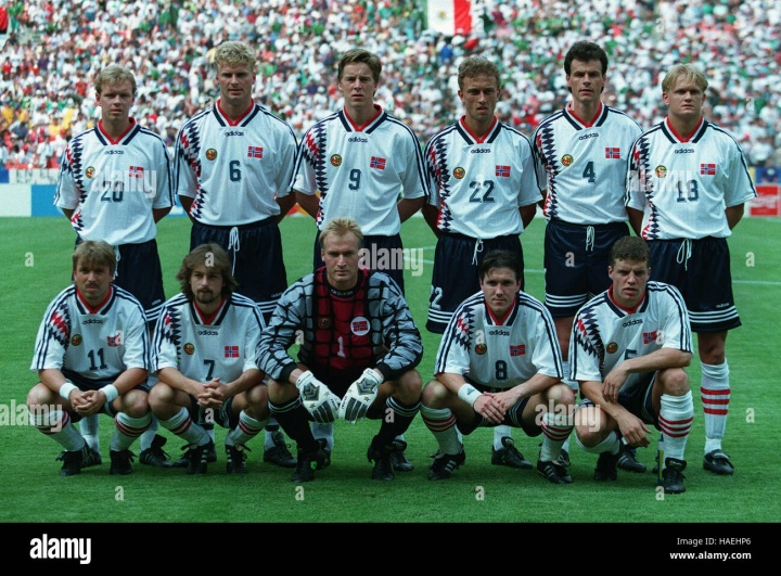 1994年世界杯赛 苏超联赛十三太保报世仇欲望,挪威阵中有哈兰德的父亲老哈兰德(图中18号)
